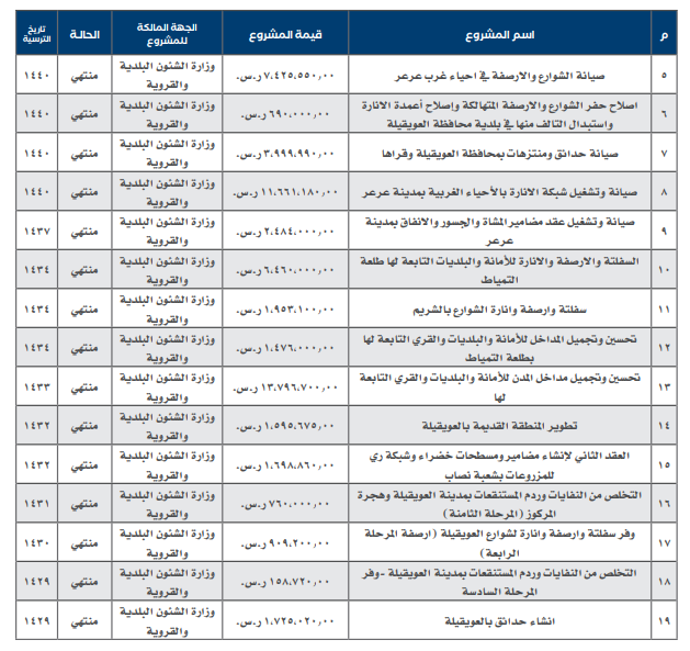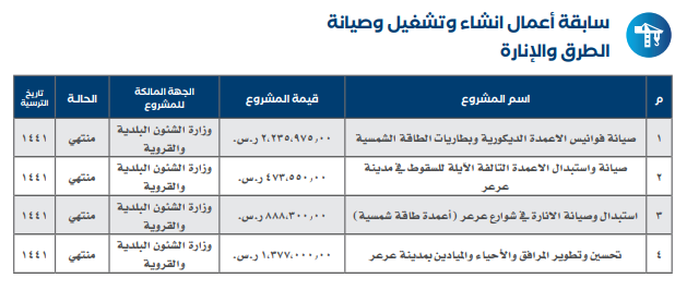 سابقة أعمال انشاء وتشغيل وصيانة الطرق واإلنارة